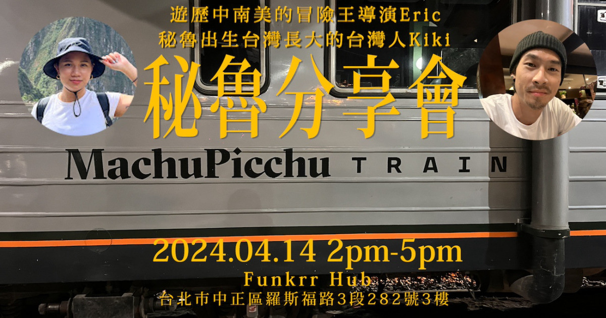 本次由兩位主講人(獨旅南美8個月的Eric及回到出生地秘魯的Kiki),從兩種截然不同的視角以及不同的旅遊面向分享這個在地球另一端的神秘印加古國!